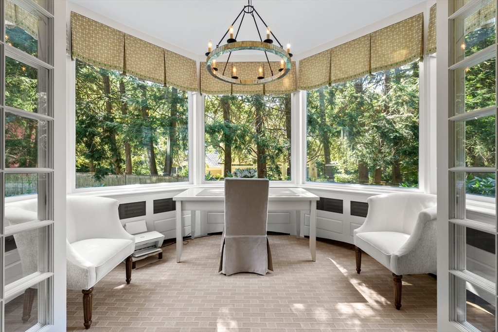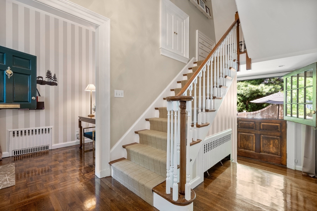Jewel box gem in the most glorious setting! From the moment you arrive you will be captivated by the charm of this special home. Tucked away in a highly sought after Dana Hall neighborhood this delightful property is full of surprises, starting with the impressive 10'8" first floor ceiling height. Next, you will fall in love with the impeccable sleek style & sun lit floor plan. Every corner has been perfectly curated from the exceptional moldings, built-ins to the remarkable outdoor space. The gorgeous dutch doors are a nod to the timeless 1920's architecture while the modern updates make this house turn key. Imagine entertaining in the stunning living/dining rooms, cooking in the chef's kitchen, having BBQs & sipping lemonade on the private patio or starting your day with a cup of coffee on the splendid balcony with scenic views overlooking the beautiful, lush fenced yard. Close to everything Wellesley has to offer; town, train, shops, Brook Path, Beebe meadow & new Hunnewell school!